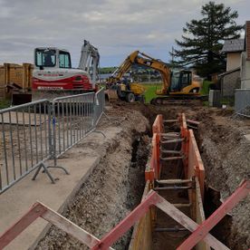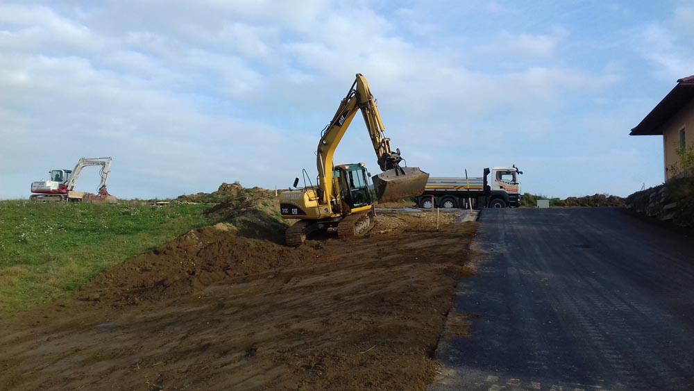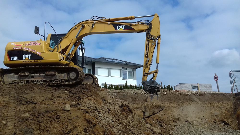 Wir übernehmen die Grabungen für das Fundament und den Keller oder die Tiefgarage, aber wir bewegen auch für andere Zwecke Erde. Dazu gehört zum Beispiel die Begradigung einer Fläche, die zu einem Parkplatz werden soll, oder das Abtragen von Böschungen, wenn eine Straße ausgebaut wird. Natürlich entfernen wir nicht nur Erde und Aushubmaterial, wir bringen auch Sand und Kies oder hochwertige Erde für die Neuanlage eines Gartens.
